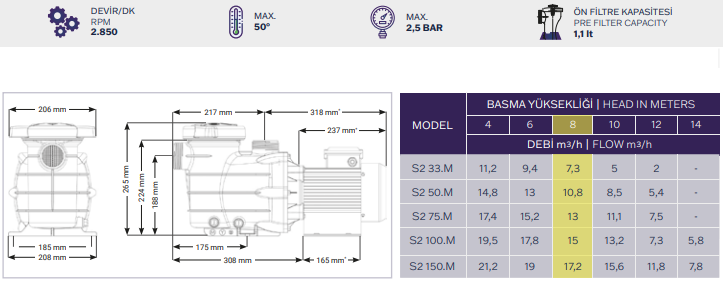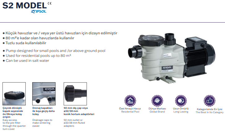 • 80 m3'e kadar olan havuzlarda kullanılır
