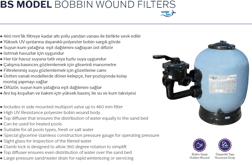 Waterfun BS Model 460 mm Bobin Sargılı Havuz Kum Filtresi