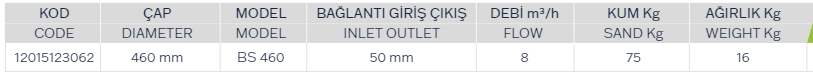 • 460 mm’lik filtreye kadar altı yollu yandan vanası ile birlikte sevk edilir